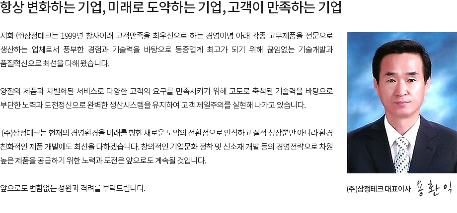 상호명 (주)삼정테크 대표자 용환익 사업자등록번호 125-81-91041 TEL 031-668-2378